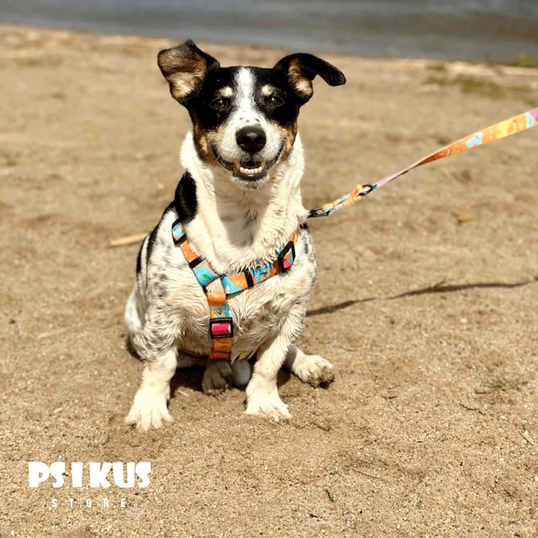 Szelki typu Guard dla psa w APSIEROLA! …drineczki, soczyste pomarańczki i degustujące pieski! Dostępne warianty: różowo-niebieski lub pomarańczowo-niebieski.